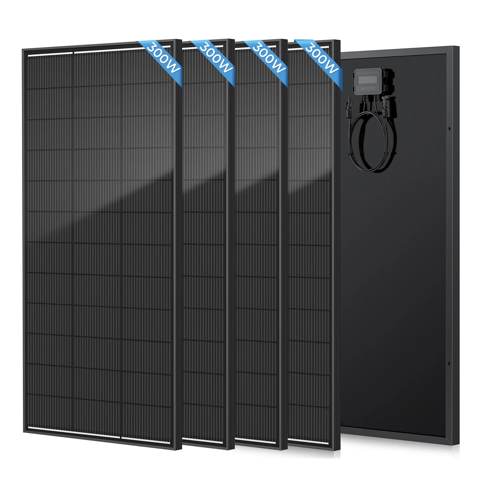 The ECO-Baeerss 1200W solar panel kit includes four 300W monocrystalline panels for high-efficiency solar power. Delivers 24.6% efficiency for reliable energy generation in RVs, camping setups, and home use. Durable design ensures long-lasting outdoor performance in various weather conditions. Ideal for charging batteries, inverters, and off-grid systems. Lightweight and easy to install for flexible placement and setup. Perfect for travelers, campers, and homeowners seeking renewable energy solutions. Supports eco-friendly power usage while reducing electricity costs. Complete 4-pack kit provides sufficient energy for multiple applications with convenience and reliability.